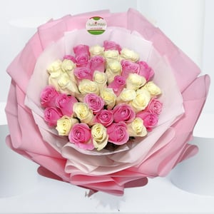 Bouquet of 35 Roses in Pink and White