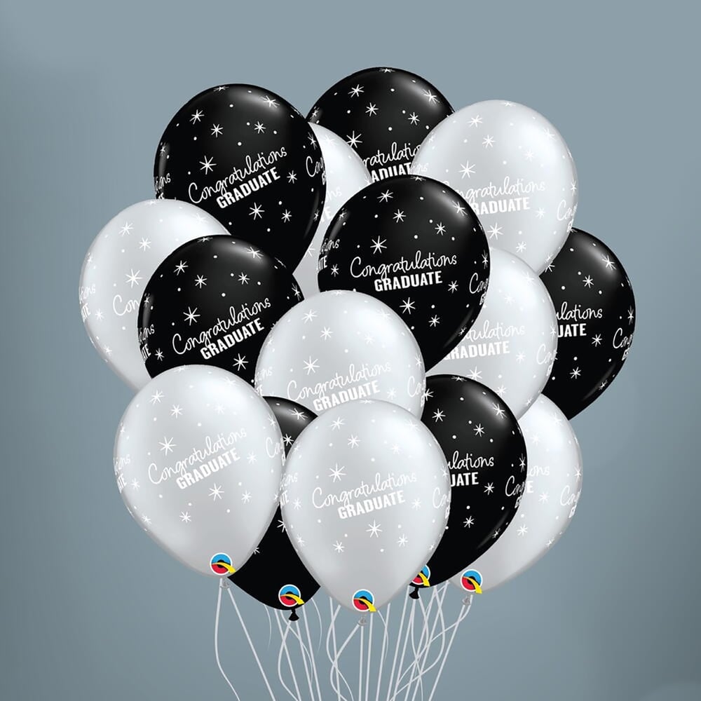 15 pieces High quality US branded balloons with written ‘Congratulations Graduate, filled with helium and weight in the bottom. Helium will last 6 to 8 hours